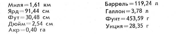 ТАБЛИЦА ПЕРЕВОДА АНГЛИЙСКИХ МЕР В МЕТРИЧЕСКИЕ