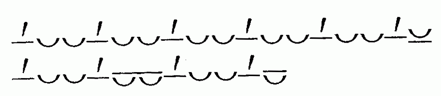 Состоит из "Большого Асклепиадова" стиха, повторенного четыре раза: