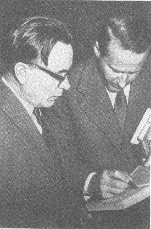 обмениваются своими книгами о путешествиях. Москва, 1961 г.