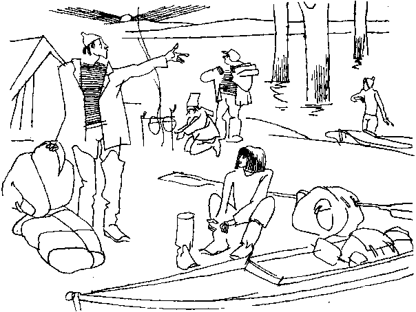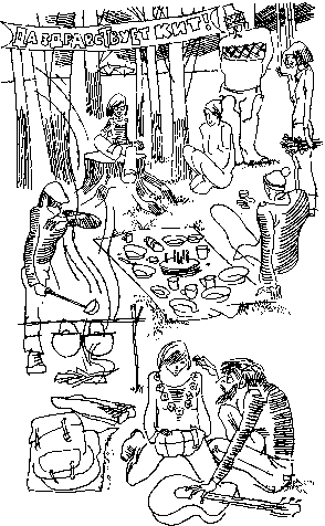 Смута и хаос охватывают все сферы походной жизни. Энтропия нарастает, и хорошо, если неизбежный взрыв происходит вблизи какой-нибудь железнодорожной станции. В противном случае члены экспедиции просто разбегаются, позорно бросая лодки, весла и шанцевый инструмент и унося с собой лишь твердую уверенность в том, что они больше никогда в жизни не отправятся в туристский поход.
