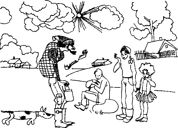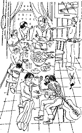 Спор прекращает хозяйка, внеся горячий пирог с грибами, собранными в походе...